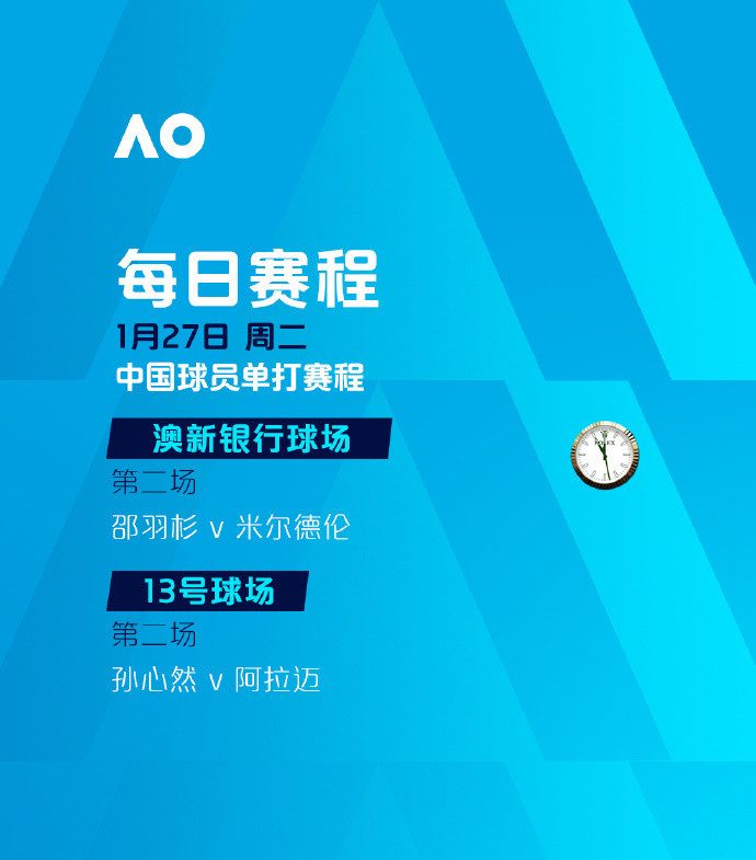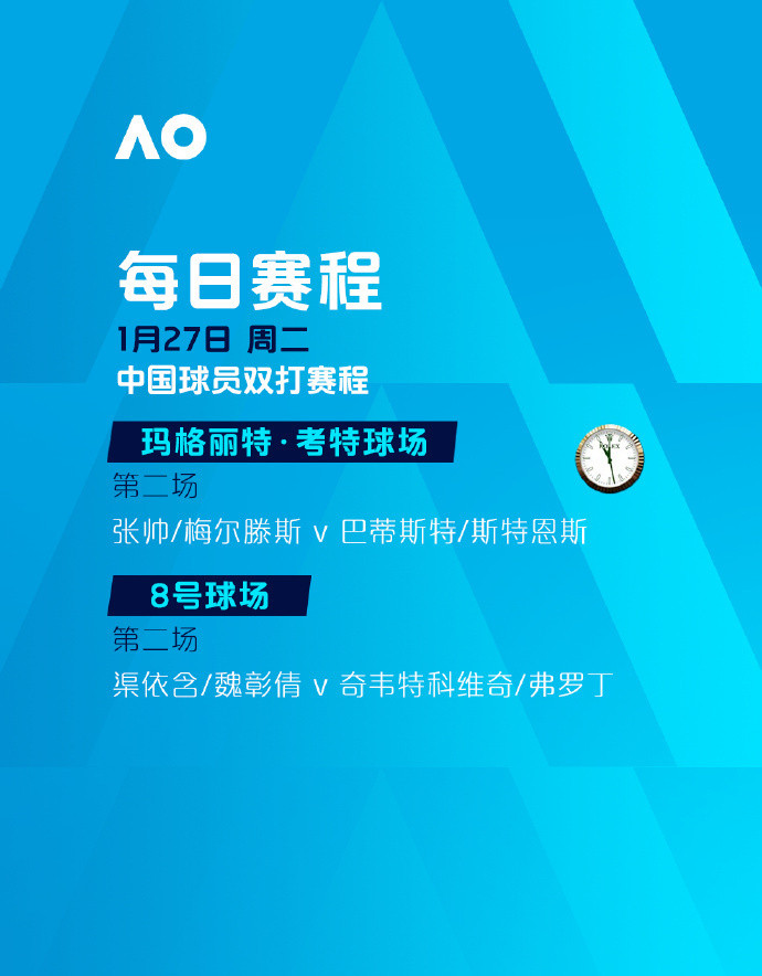 比赛时间:罗德·拉沃尔球场、玛格丽特·考特球场将分别从北京时间8:30、8:00开打,其余球场将分别从北京时间6:00和7:30开打。