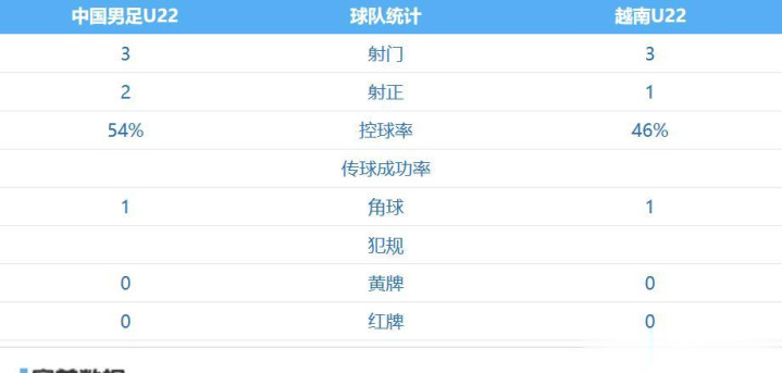从上半场来看,数据统计,双方射门都是3次,射正中国队2-1领先,控球率中国队也是稍稍占优。